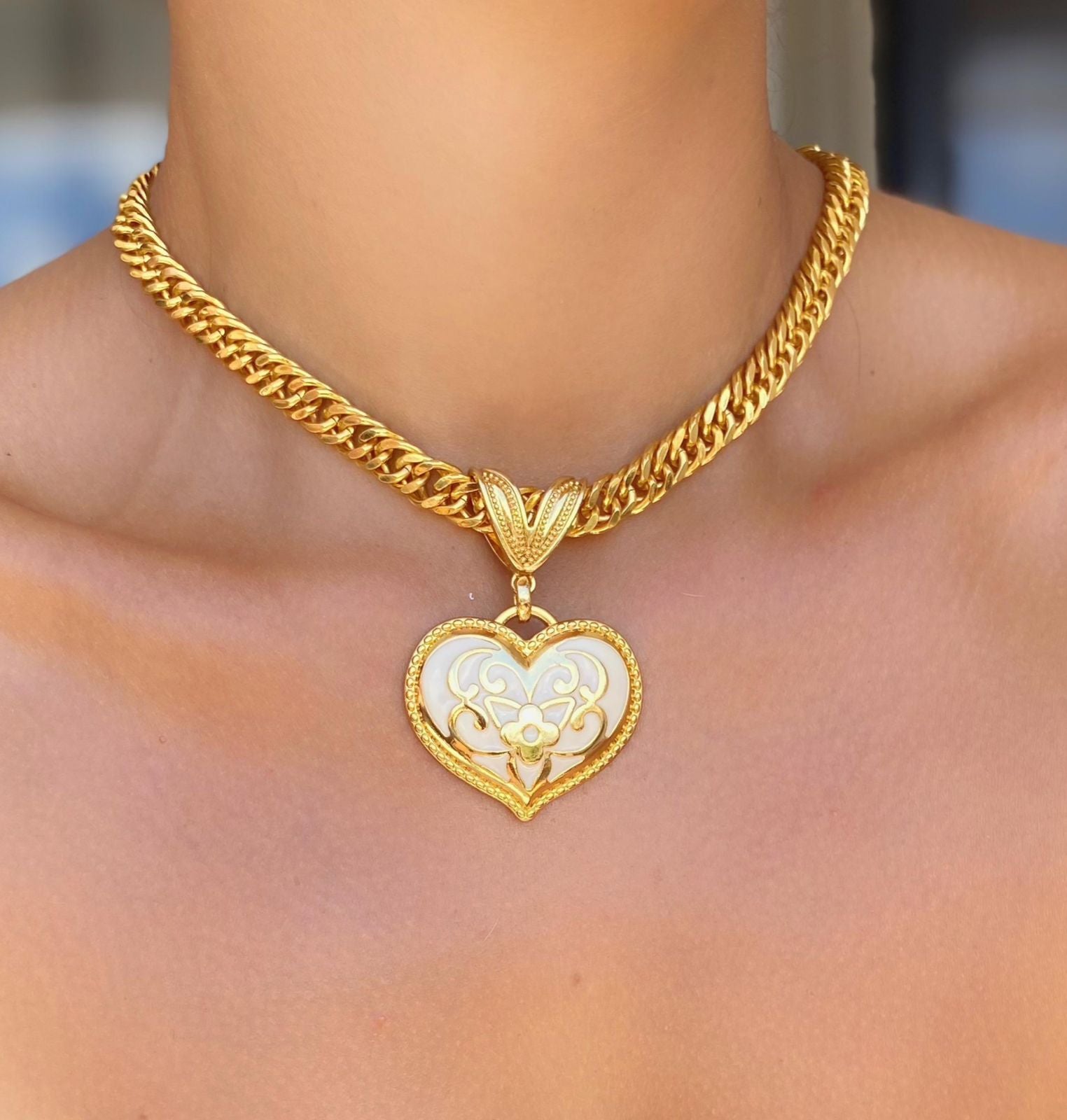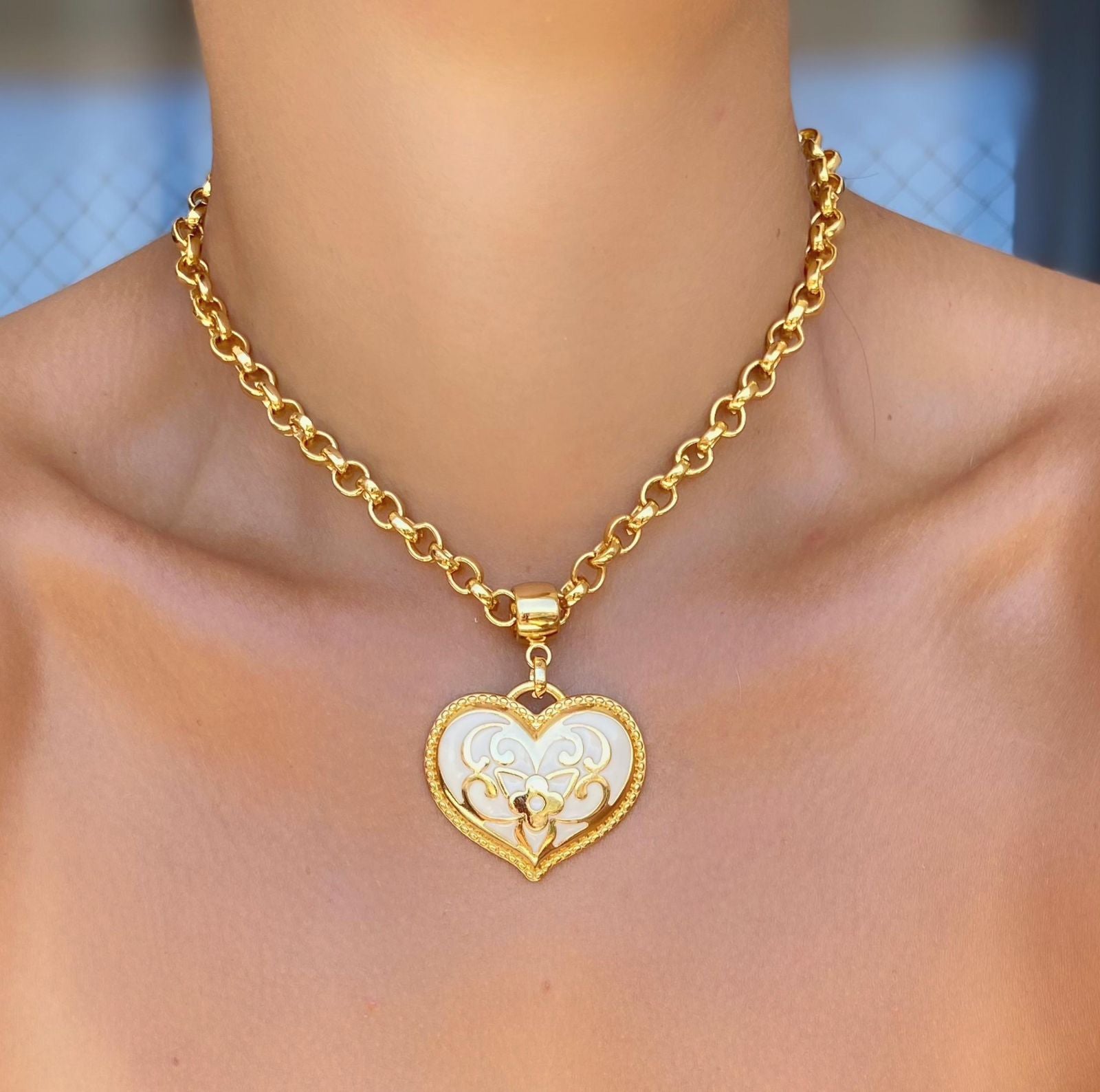 Colar corrente grumet grossa  + pingente coração grande Colar corrente grumet grossa  + pingente coração grande