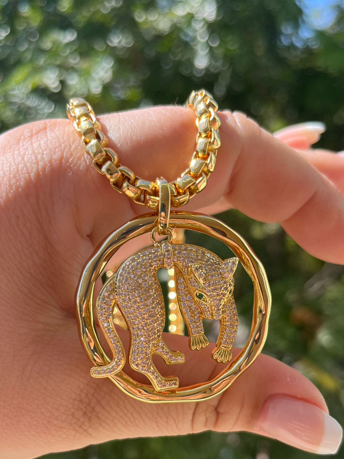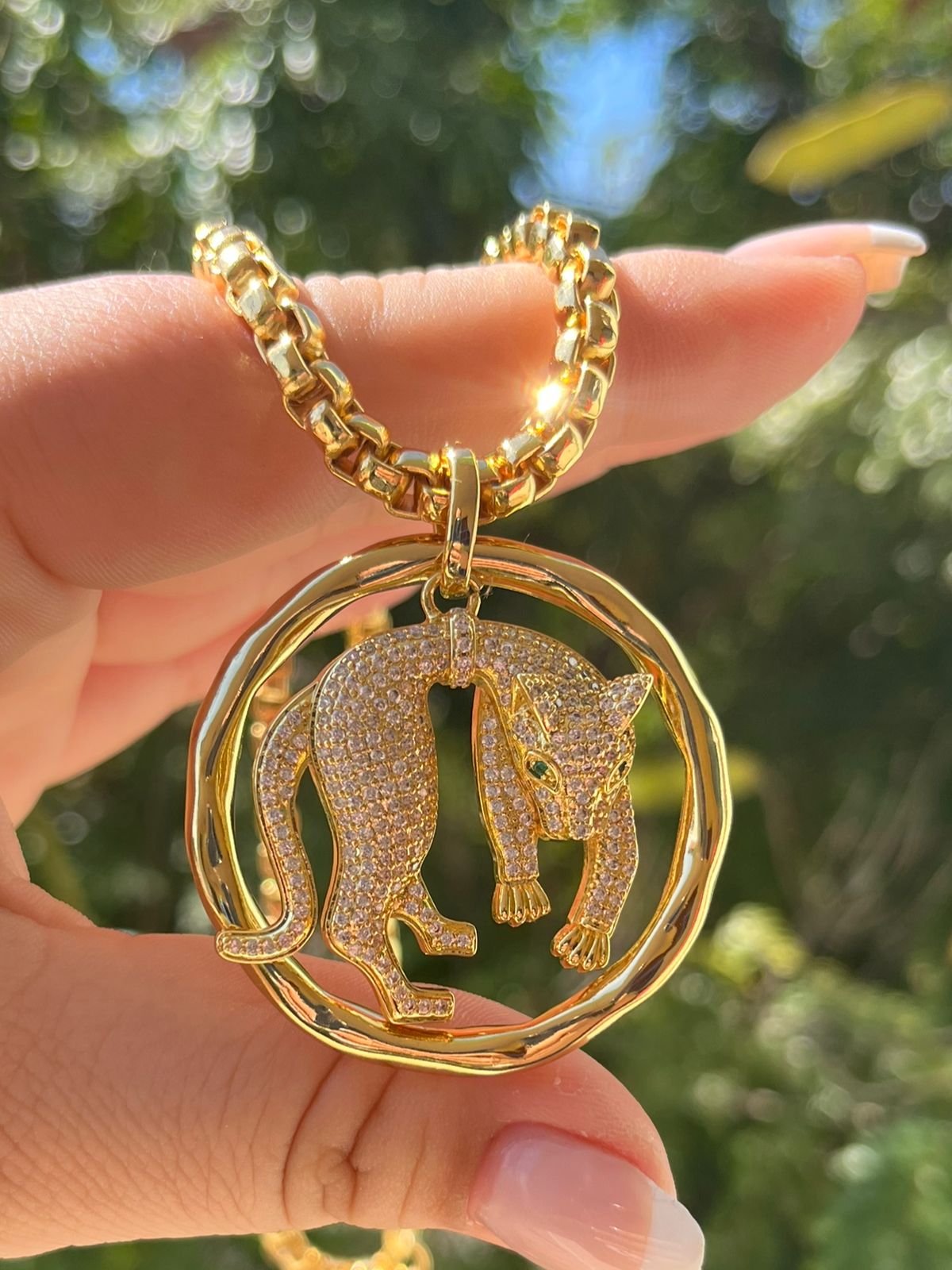 Colar corrente veneziana grossa  + pingente pantera cravejado grande Colar corrente veneziana grossa  + pingente pantera cravejado grande