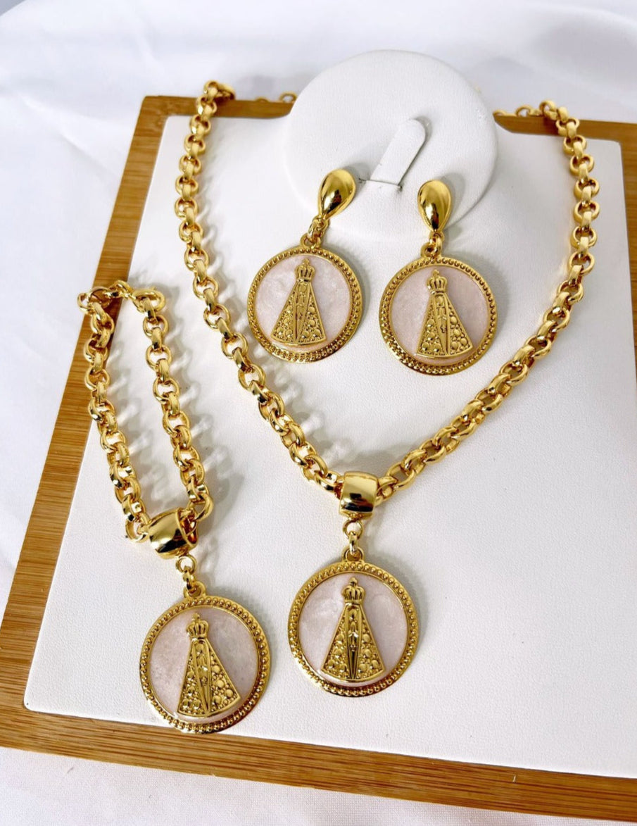 • corrente elo português grosso com 3 peças Nossa Senhora