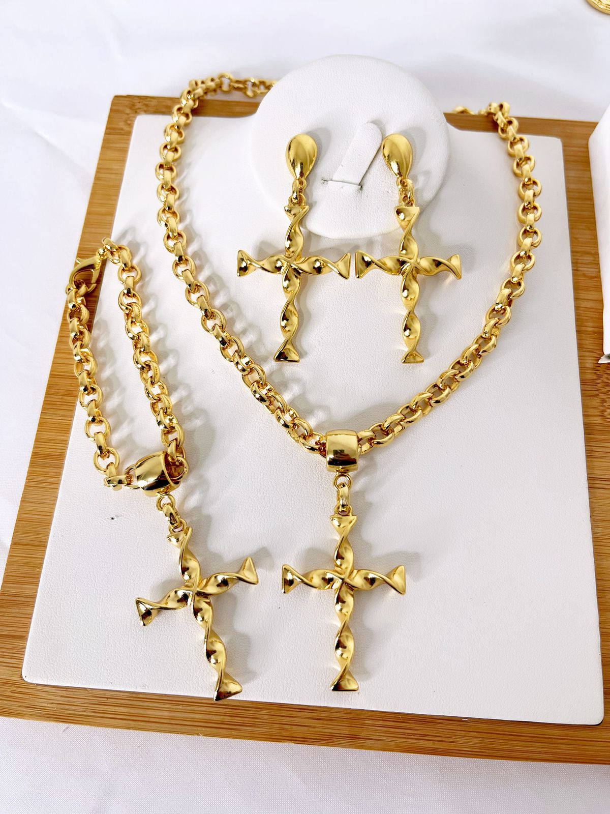 • Corrente elo português grosso com 3 peças Cruz transada